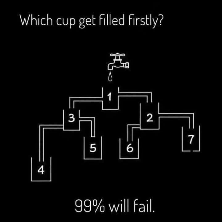 皆さん突然ですが、とある方が問題を作ってくれましたので一緒に考えてください。絵を見て蛇口から水を注いだ時にどのコップが一番早く一杯になるでしょうか?蛇口から出る水量は一定で、1のコップが一瞬で満タンになる様な量は出ないと考えてください。99%の人が間違えるそうです。皆さんは解けますか?