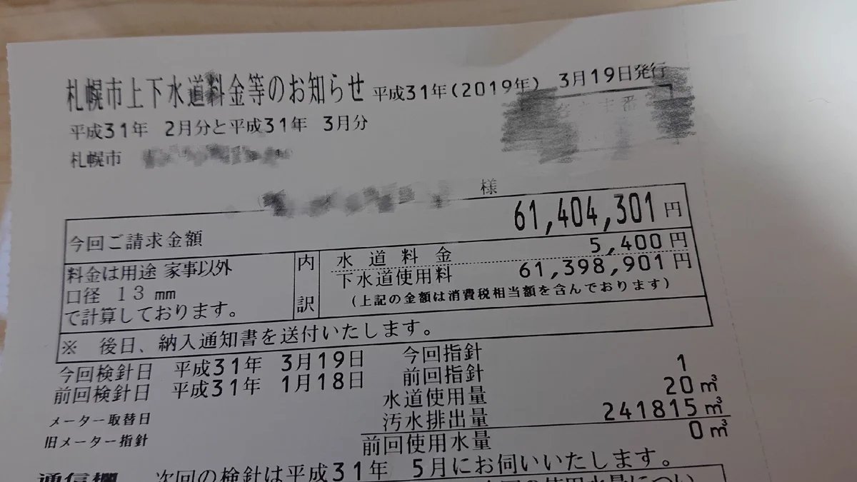 毎日使う水道水。料理、お風呂、洗車など当たり前のように使っていますが、水道の民営化で今より高くなってしまう恐れが話題になりました。しかしまだ民営化もされていないのに、とんでもない額の水道料金の請求が来ましたw