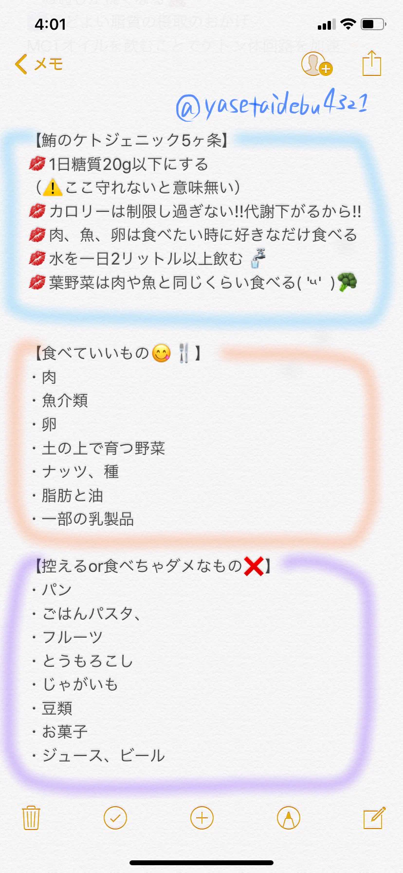 本気のダイエットをして見事に痩せることができたツイート主さんはケトジェニックダイエットを実践したのだそうですが、そこで学んだことをこのように分かりやすくまとめてくれています!ケトジェニックダイエット…確実に痩せられそうですね。