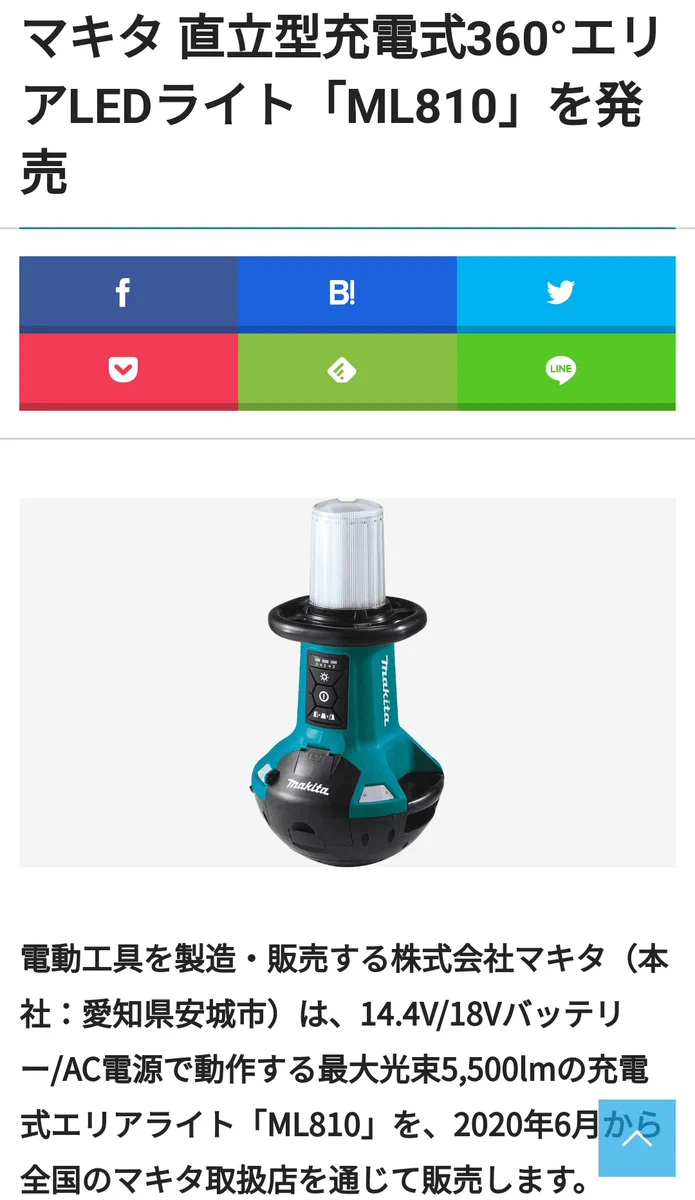 マキタの直立型充電式360°エリアLEDライト「ML810」!クソでかい懐中電灯ではなかったwww