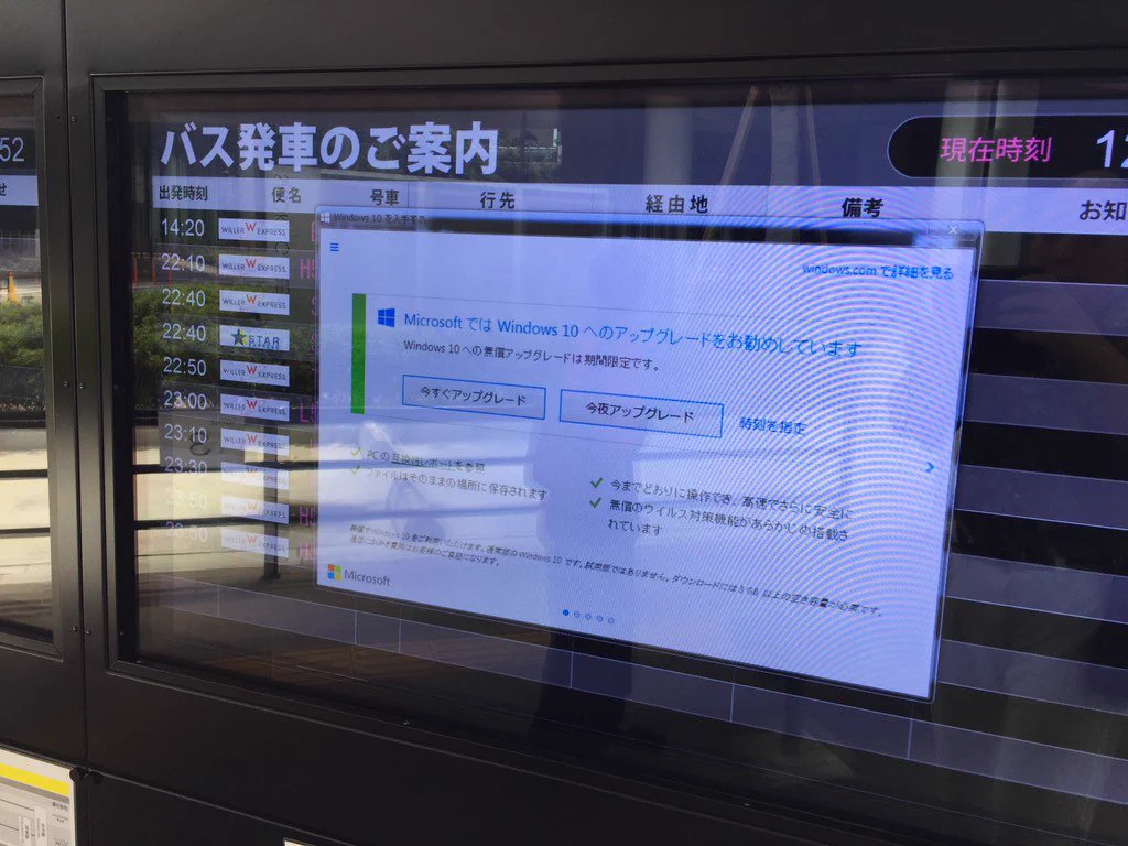 おいおいまたかよw今度は電光掲示板でWindows10テロ発生www