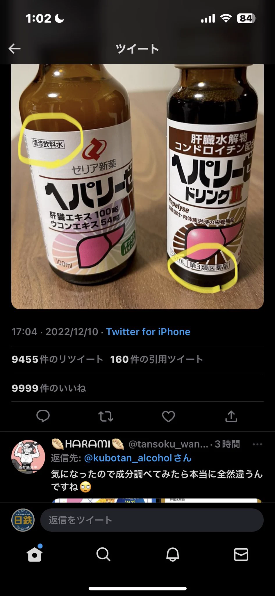 コンビニで買えるヘパリーゼと、ドラッグストアで買えるヘパリーゼは別物であるということが紹介されている画像のツイートでした。